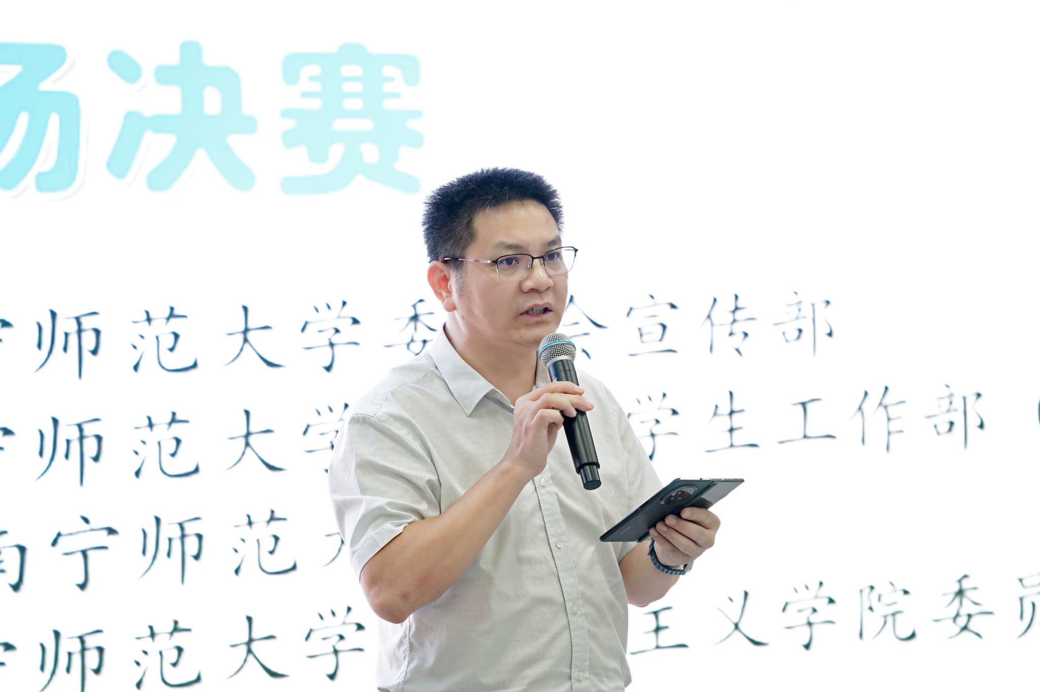 隆廣慶在致辭中指出,此次理論宣講大賽作為深入學習貫徹習近平新時代中國特色社會主義思想,推動《黨史學習教育工作條例》落實的一項重要舉措,目的在于通過學黨史、講黨史、賽風采的形式,引導廣大黨員師生深入學習貫徹習近平新時代中國特色社會主義思想和黨的二十大精神,鑄牢中華民族共同體意識,不斷鞏固和拓展主題教育成果,奮力譜寫中國式現代化廣西篇章。他希望廣大黨員師生在重溫黨和國家事業歷史性成就、歷史性變革,回顧新時代中華民族波瀾壯闊、恢宏壯麗奮斗畫卷的過程中,深刻領悟“兩個確立”的決定性意義,堅決做到“兩個維護”,緊跟偉大復興領航人踔厲奮發,以實際行動迎接建黨103周年和黨的二十屆三中全會的勝利召開;希望各位選手在大賽中充分展示黨的光輝歷程和輝煌成就,充分展示南師人的蓬勃朝氣和精神風貌。