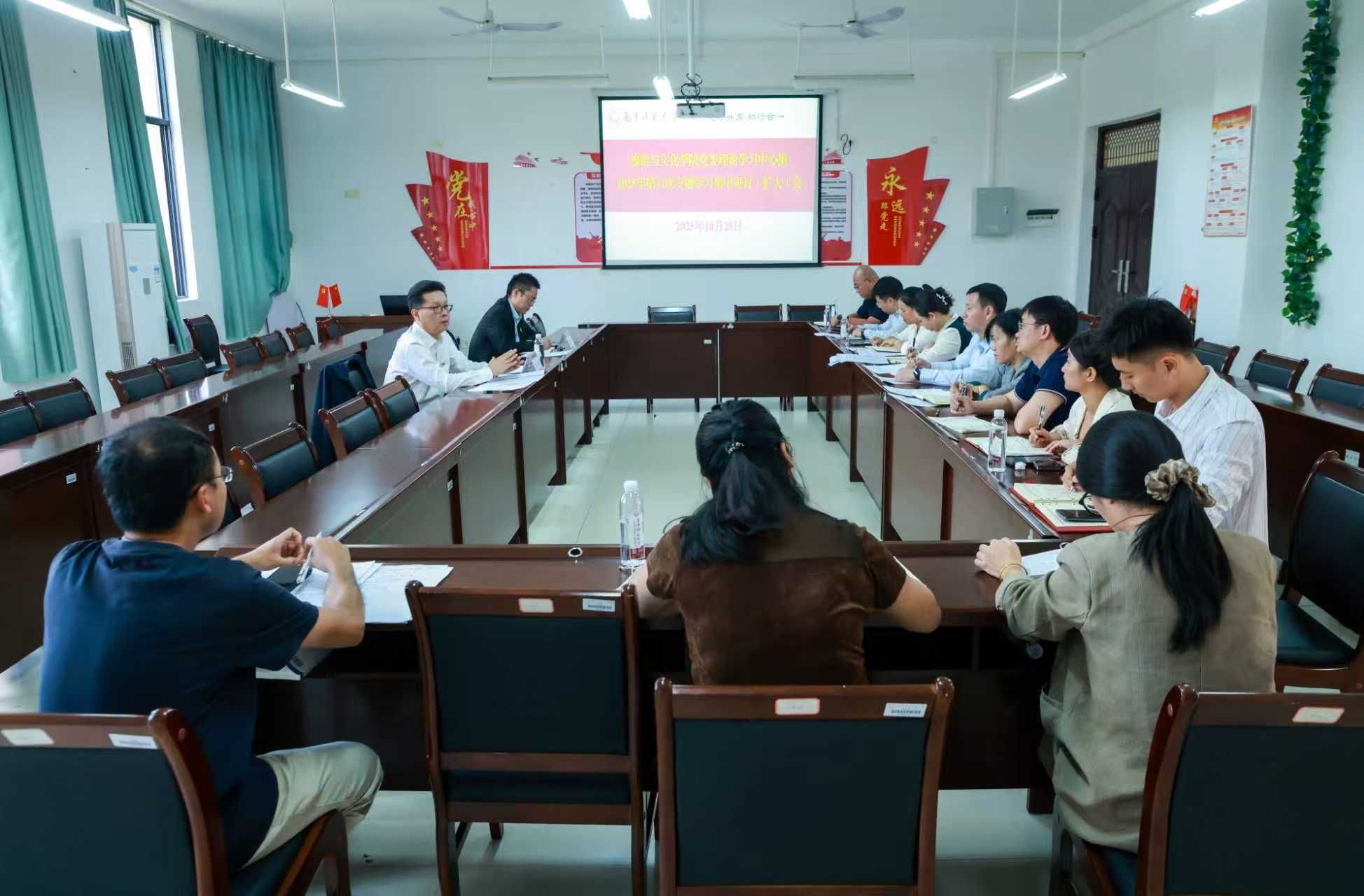 10月28日下午,旅游與文化學院在武鳴校區地信樓B201室召開學院黨委理論學習中心組2025年第六次專題學習集中研討(擴大)會。學校黨委書記張鵬到會巡聽旁聽并指導,黨委宣傳部部長紀明列席會議。會議由學院黨委書記賈坷主持。會前,與會人員進行了為期三天的個人自學。