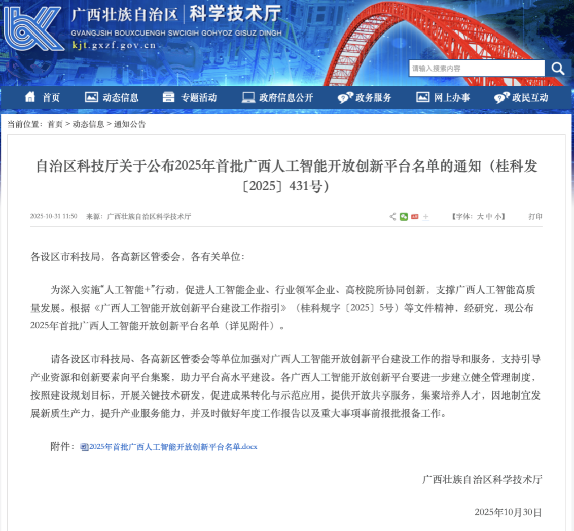 近日,自治區科技廳發布《自治區科技廳關于公布2025年首批廣西人工智能開放創新平臺名單的通知》,依托我校物理與電子學院建設的“廣西—馬來西亞具身通感人工智能聯合實驗室”成功獲批,成為廣西首批五個人工智能聯合實驗室之一。