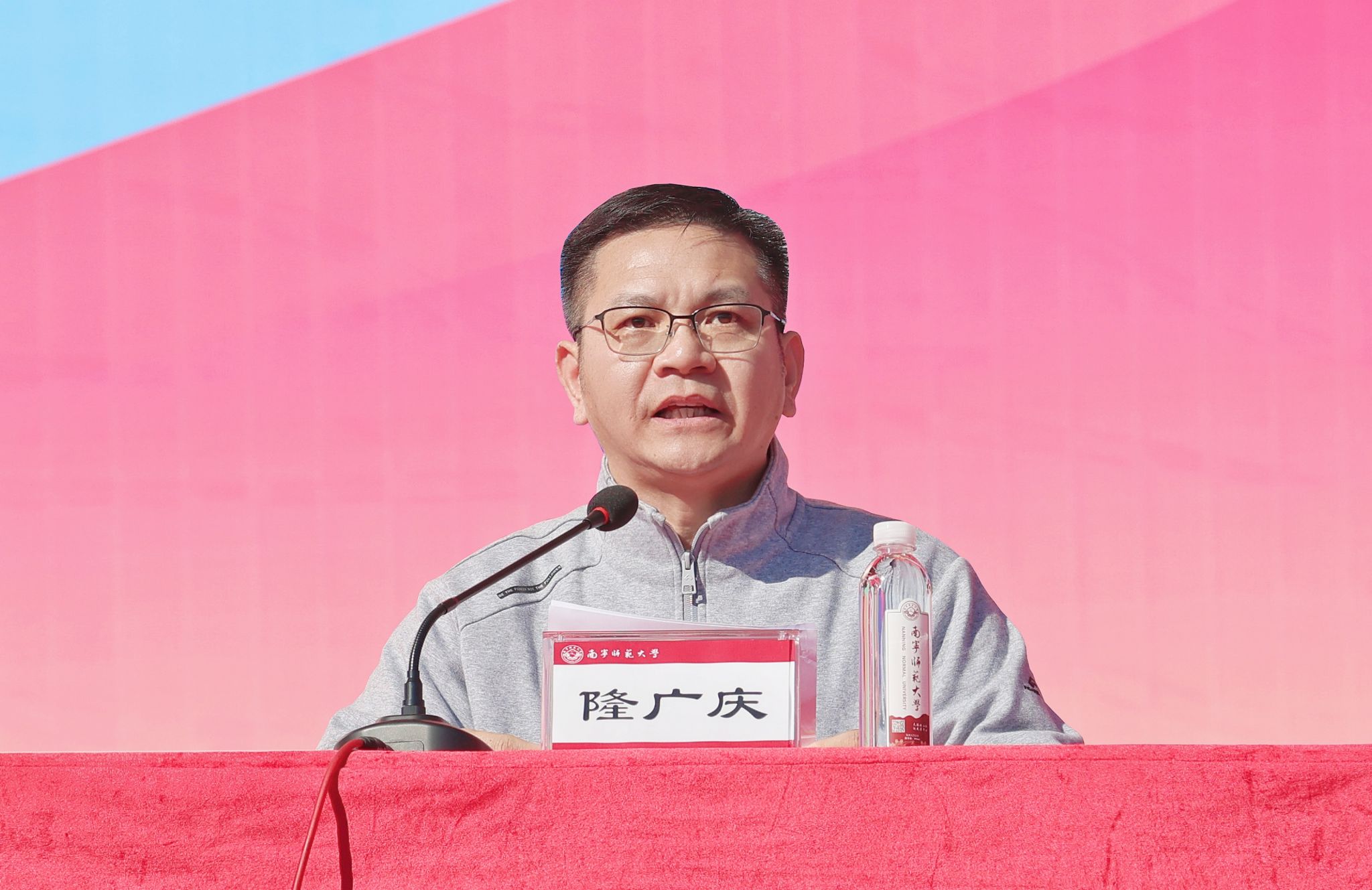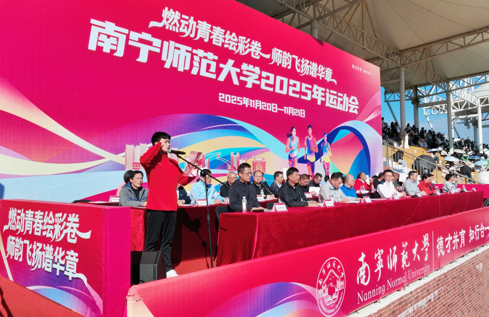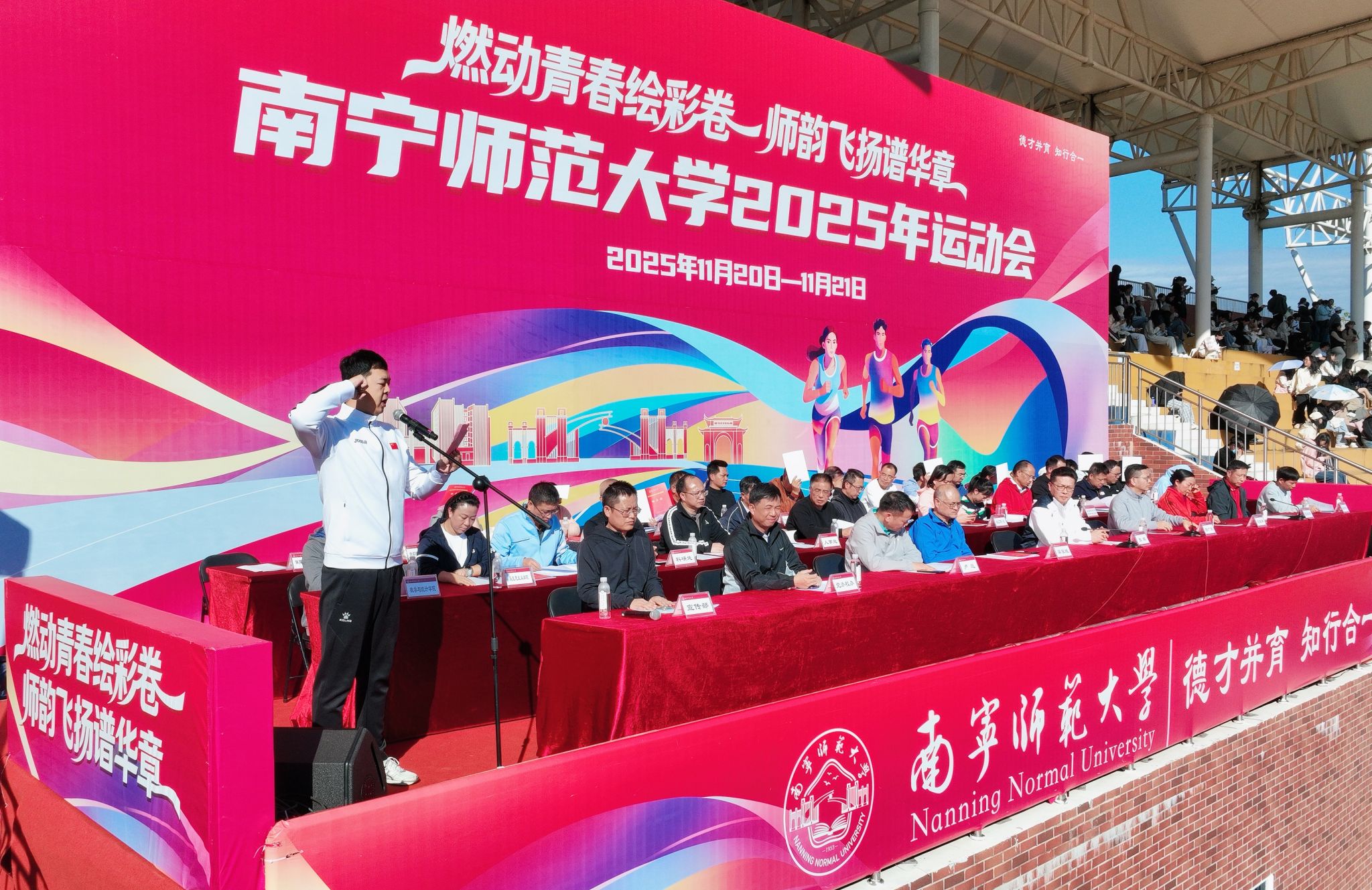 校長隆廣慶致開幕詞。他代表學校向全體運動員、裁判員和工作人員致以誠摯的問候,向承辦本次運動會的體育與健康學院及相關(guān)單位表示衷心的感謝。他指出,作為教育部高水平運動隊建設(shè)高校,學校始終將體育擺在重要位置。本次運動會,既是展現(xiàn)師生風采的新舞臺、檢驗學校育人成果的重要窗口,也是深化體教融合的新起點、落實“五育并舉”的新實踐。他希望全體運動員遵守規(guī)則、尊重對手、尊重裁判,勇于挑戰(zhàn)、賽出風格;希望裁判員和工作人員恪盡職守、公正裁決、熱情服務(wù);希望各單位密切協(xié)作、精心組織,共同把運動會辦出水平、辦出特色、辦成品牌。他號召全體師生在“更快、更高、更強——更團結(jié)”的奧林匹克格言激勵下,以中國共產(chǎn)黨南寧師范大學第一次黨員代表大會確立的目標為引領(lǐng),團結(jié)一心、實干擔當,共同譜寫南寧師范大學高質(zhì)量發(fā)展新篇章。