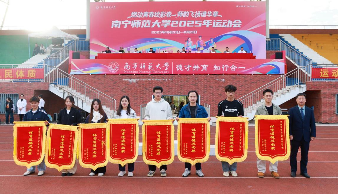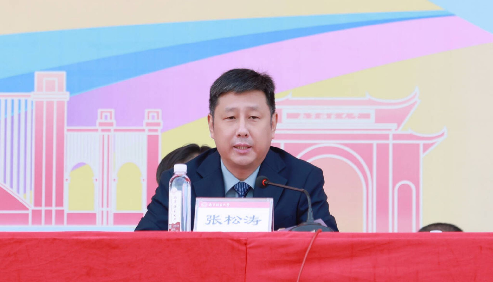 張松濤在致辭中代表學校向恪盡職守的全體裁判員、工作人員和志愿者表示衷心感謝,向取得優異成績的參賽單位和個人表示熱烈祝賀。他指出,本屆運動會是中國共產黨南寧師范大學第一次黨員代表大會勝利召開后,舉辦的一次承前啟后、凝聚力量、鼓舞斗志的盛會,為學校建設新時代高水平師范大學注入了強勁動力。他對廣大師生提出三點希望:一是以體育強健體魄,踐行主動健康理念;二是以體育涵養素質,塑造健康積極品格;三是以體育賦能發展,彰顯師范育人擔當。他鼓勵師生將賽場上的拼搏精神轉化為學習工作的實干銳氣,為推進學校各項事業高質量發展貢獻力量。