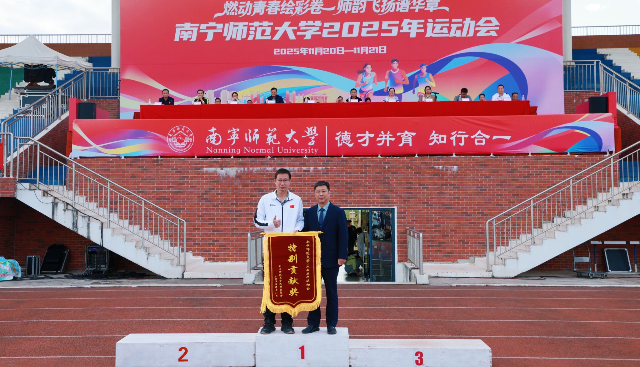 張松濤副校長為獲得運動會“特殊貢獻獎”的體育與健康學院頒獎