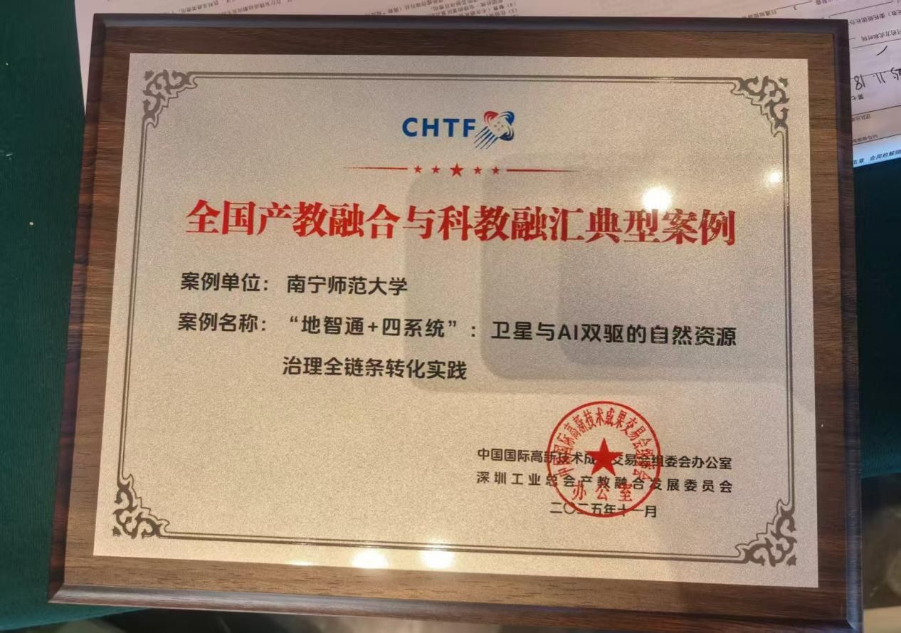 11月14日,我校參加了在深圳國(guó)際會(huì)展中心舉辦的“第二十七屆中國(guó)國(guó)際高新技術(shù)成果交易會(huì)暨第二屆產(chǎn)教融合與科教融匯論壇”。我校“衛(wèi)星+”空間AI自然資源智能治理廣西高校工程研究中心案例——“地智通+四系統(tǒng)”衛(wèi)星與AI雙驅(qū)的自然資源治理全鏈條轉(zhuǎn)化實(shí)踐,成功入選全國(guó)產(chǎn)教融合與科教融匯典型案例。