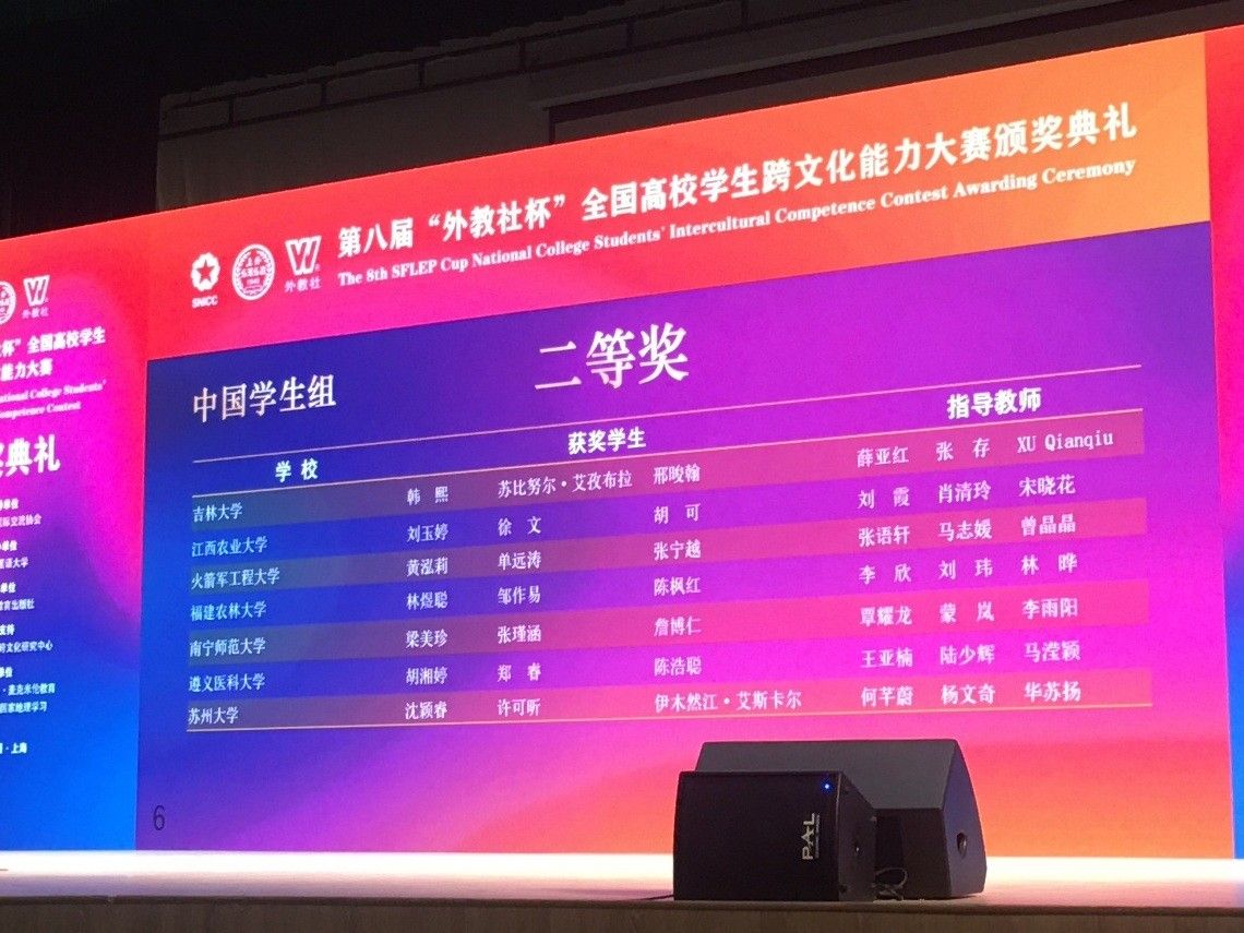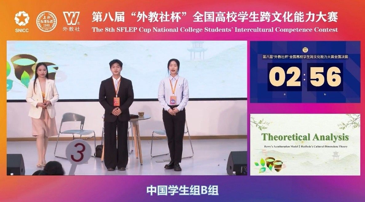 12月11日至14日,第八屆“外教社杯”全國高校學生跨文化能力大賽全國決賽總決賽在上海外國語大學成功舉辦并全程線上直播。本次大賽競爭激烈,共有來自全國高校的76支中國學生組隊伍同臺角逐。我校代表隊由外國語學院學科教學(英語)專業梁美珍、地理科學與規劃學院大氣科學專業詹博仁和美術與設計學院美術學專業張瑾涵等3名同學組成,在外國語學院覃耀龍、蒙嵐、李雨陽等老師共同指導下,榮獲全國總決賽中國學生組二等獎。