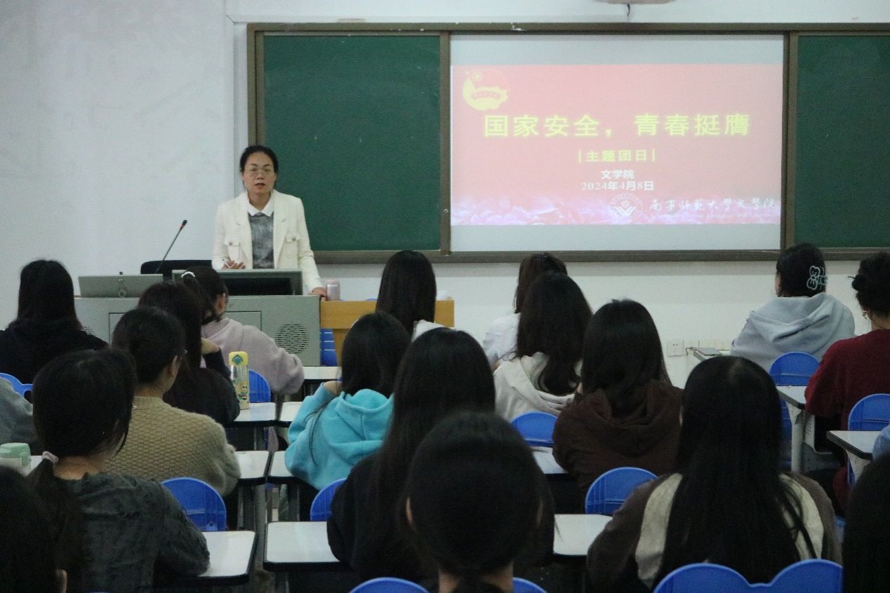為深入學習貫徹習近平新時代中國特色社會主義思想,在4月15日第九個國家安全教育日來臨之際,文學院團委學生會于4月8日下午在文綜413開展以“國家安全 青春挺膺”為主題的團日活動。此次團日活動由輔導員沈珊珊老師主持,文學院團委學生會各部門負責人和各班團支書參與了此次主題團日活動。活動伊始,沈珊珊老師以“什么是國家安全?”“國家安全包括那些領域?”為切入點,從不同角度講解國家安全知識,結合知識講解、觀看視頻、互動答題等方式,向同學們普及了全民國家安全教育日的由來、國家安全的基本概念以及如何維護國家安全等內容,幫助同學們正確認識和理解國家總體安全觀,引導學員們深入學習貫徹總體國家安全觀,堅定不移走中國特色國家安全道路,切實增強憂患意識和使命擔當,勇于為維護國家主權、安全挺膺擔當,在強國建設、民族復興偉業中勇當先鋒隊、突擊隊。最后,團委學生會成員分享了自己的活動感悟、對于國家安全的看法以及未來的發展規劃。大家紛紛表示,要以此次活動為契機,不斷提高自己的綜合素質,努力成為有理想、有擔當、有作為的新時代青年。通過此次主題團日活動,同學們對習近平總書記關于總體國家安全觀的重要論述有了更深層次的理解,利于增強維護國家安全的思想自覺和行動自覺,為維護國家安全和社會穩定貢獻青春力量。