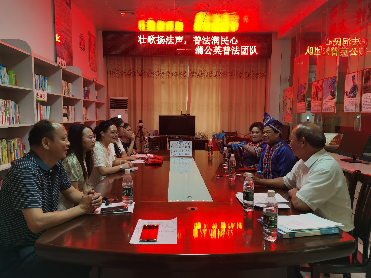 為了解山歌普法在基層社會的開展情況,探索山歌普法的法治宣傳教育作用,2024年7月23日下午,蒲公英普法團隊來到了武鳴紅嶺社區山歌協會開展深入調研。
