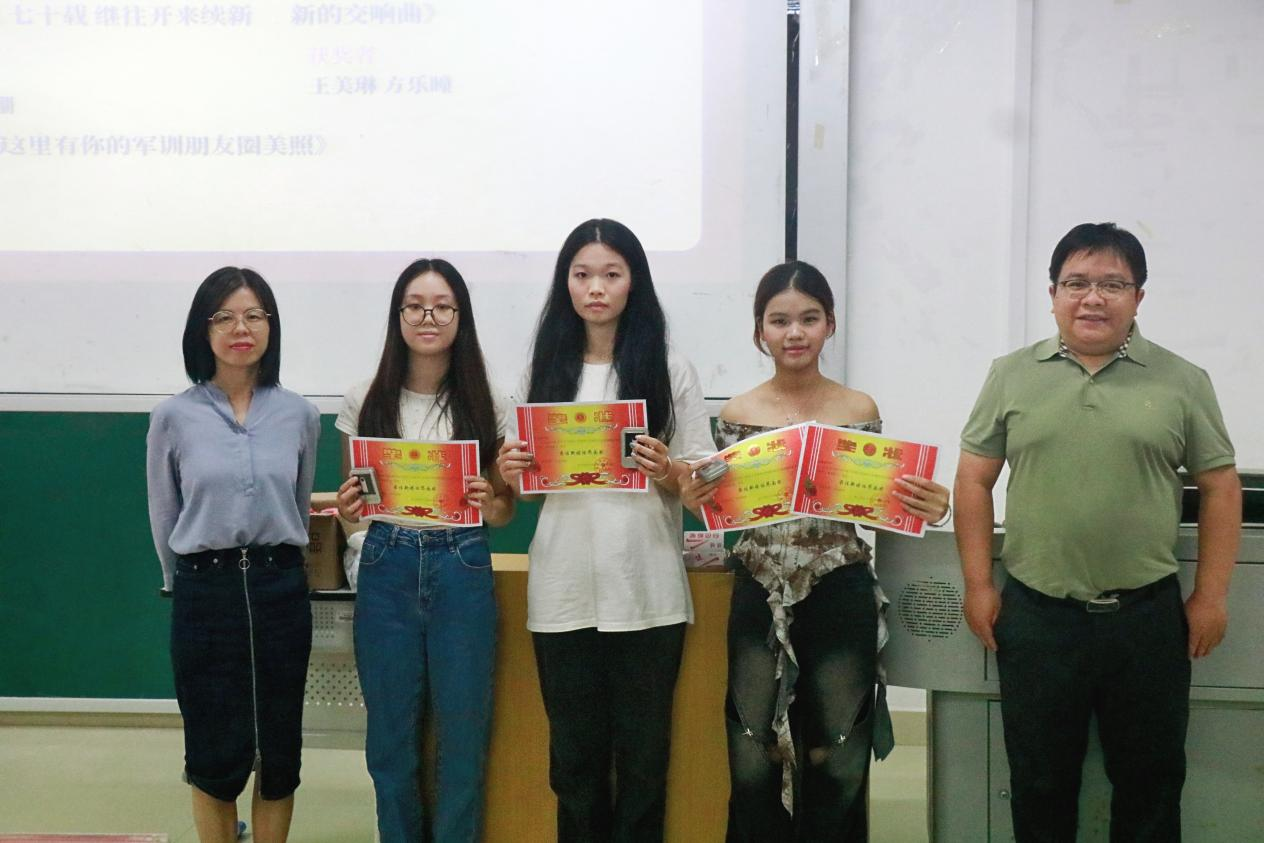 (梁穎濤老師和黃景濤老師為獲獎同學頒獎并合影留念)