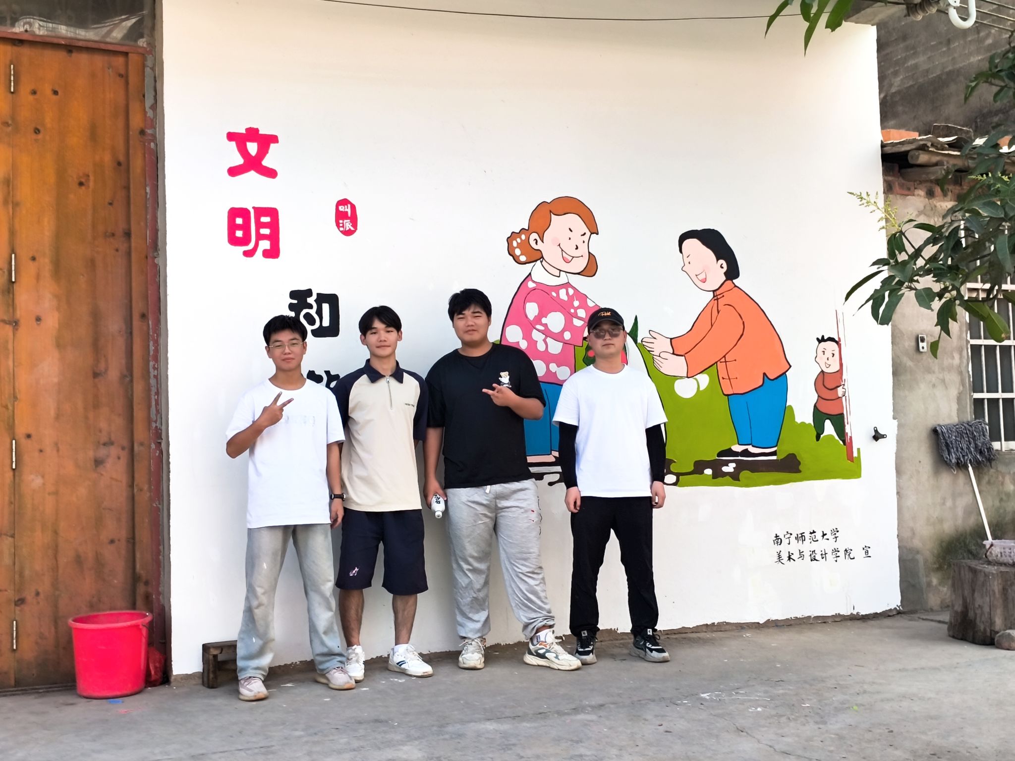 為學習貫徹黨的二十屆三中全會精神,發揮高校服務鄉村文化振興的專業優勢,11月15日至17日,我校應邀派出美術與設計學院師生墻繪工作隊一行26人赴學校定點幫扶村寧明縣那陶村,開展了“三下鄉”鄉村振興墻繪活動。
