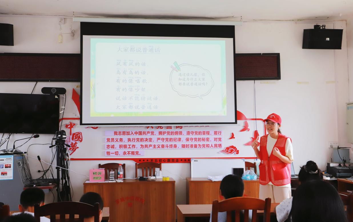 “情暖童心護成長”星火班開營班會如期而至,從心靈成長到文化體驗,從藝術(shù)創(chuàng)作到推普學(xué)習(xí),豐富的內(nèi)容讓教室里瞬間沸騰起來,孩子們的歡聲笑語此起彼伏。當《五星出東方》的旋律響起,孩子們挺直小身板,用稚嫩卻清亮的嗓音合唱。歌聲里有對祖國的懵懂熱愛,也有與老師間悄然滋長的默契,一堂愛國教育課在旋律中自然流淌。拓印課成了最熱鬧的時光。老師們把從大自然中取材的樹葉、花瓣分發(fā)給孩子們,演示并指導(dǎo)孩子們開展植物拓印方法。在這個過程中,孩子們不僅受到了美的熏陶,感受到了手工藝術(shù)的魅力,也在動手中鍛煉了精細動作和創(chuàng)造力,體驗到了動手實踐的樂趣。普通話課上,老師以生動的視頻讓孩子們明白學(xué)好普通話的意義。詩歌朗誦與繞口令挑戰(zhàn)輪番上演,孩子們爭相舉手,用清脆的聲音演繹語言的韻律。作為國家語言文字推廣基地的實踐活動,這堂課讓孩子在趣味中感受普通話的魅力,為鄉(xiāng)村振興種下語言溝通的種子。窗外,龍岸鎮(zhèn)天寶村駐村第一書記巫福星與不少家長被這份專注與熱情吸引,悄悄駐足凝望,目光中滿是欣慰。