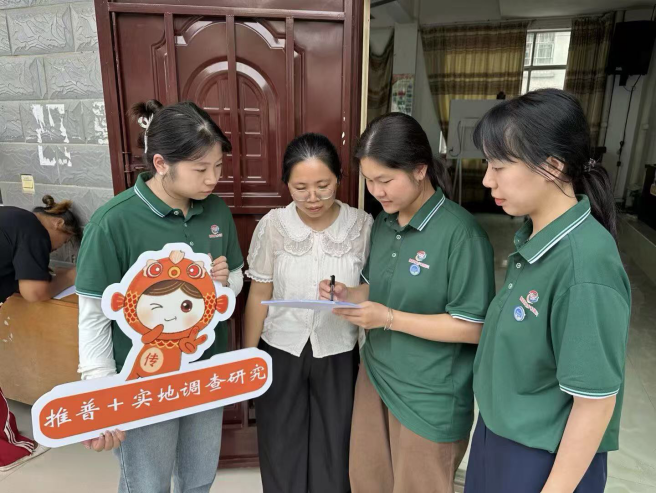 7月12日至7月17日,在南寧市邕寧區(qū)新江鎮(zhèn)的學校里、街道上、農(nóng)戶家中,一群身著深綠色寫有“推普助力鄉(xiāng)村振興”字樣上衣的大學生正手持著一份份調(diào)查問卷與當?shù)卮甯刹俊⒋迕瘛W校老師以及學生家長們熱切交談——這是南寧師范大學新聞傳播學院暑期“三下鄉(xiāng)”實踐團隊深入鄉(xiāng)村一線,開展專項調(diào)研的生動場景。