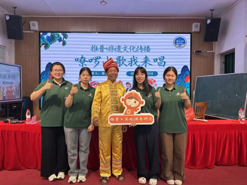 調(diào)研組還訪談了當?shù)胤沁z項目嘹啰山歌傳承人蘇蘭育老師。作為壯族山歌文化的傳承人,蘇蘭育老師對推普工作給予積極評價。他表示:“學好普通話能幫助更多人深入理解嘹啰山歌蘊含的民族歷史與生活智慧。”他認為,“非遺+推普”的融合模式既能讓普通話在民族地區(qū)扎根,又能讓傳統(tǒng)非遺文化借助通用語言獲得更廣泛傳播,為鄉(xiāng)村文化振興注入新活力。