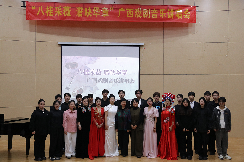 11月26日晚,“八桂采薇 譜映華章”廣西戲劇音樂講唱會在武鳴校區音舞樓音樂廳舉行。本次講唱會由音樂與舞蹈學院舉辦,特邀云南師范大學藝術學院楊琛教授、廣西壯族自治區民族文化藝術研究院黃羽研究館員擔任學術顧問。