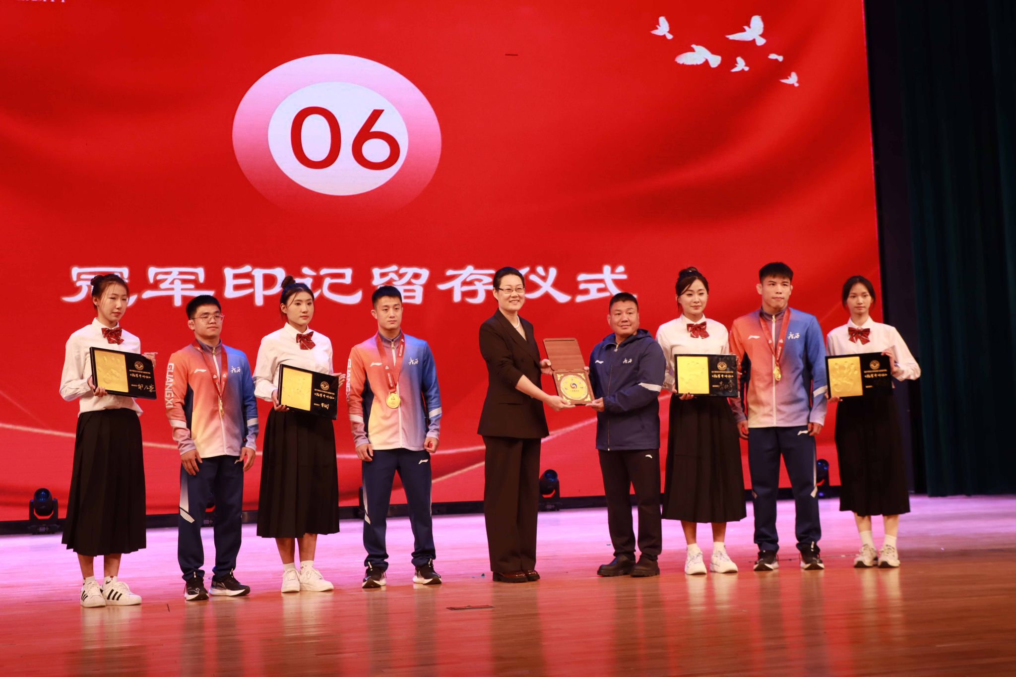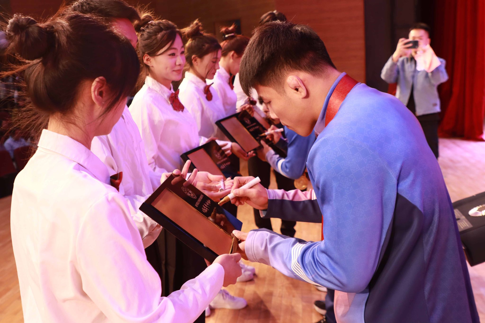 活動最后,冠軍們將手印留存,學生們有序排隊與冠軍合影。冠軍們始終微笑回應(yīng),現(xiàn)場溫馨而有序。此次“零距離”接觸,不僅讓學子感受到體育明星的親和力,更在他們心中播下了勇于挑戰(zhàn)、不懈奮斗的種子。