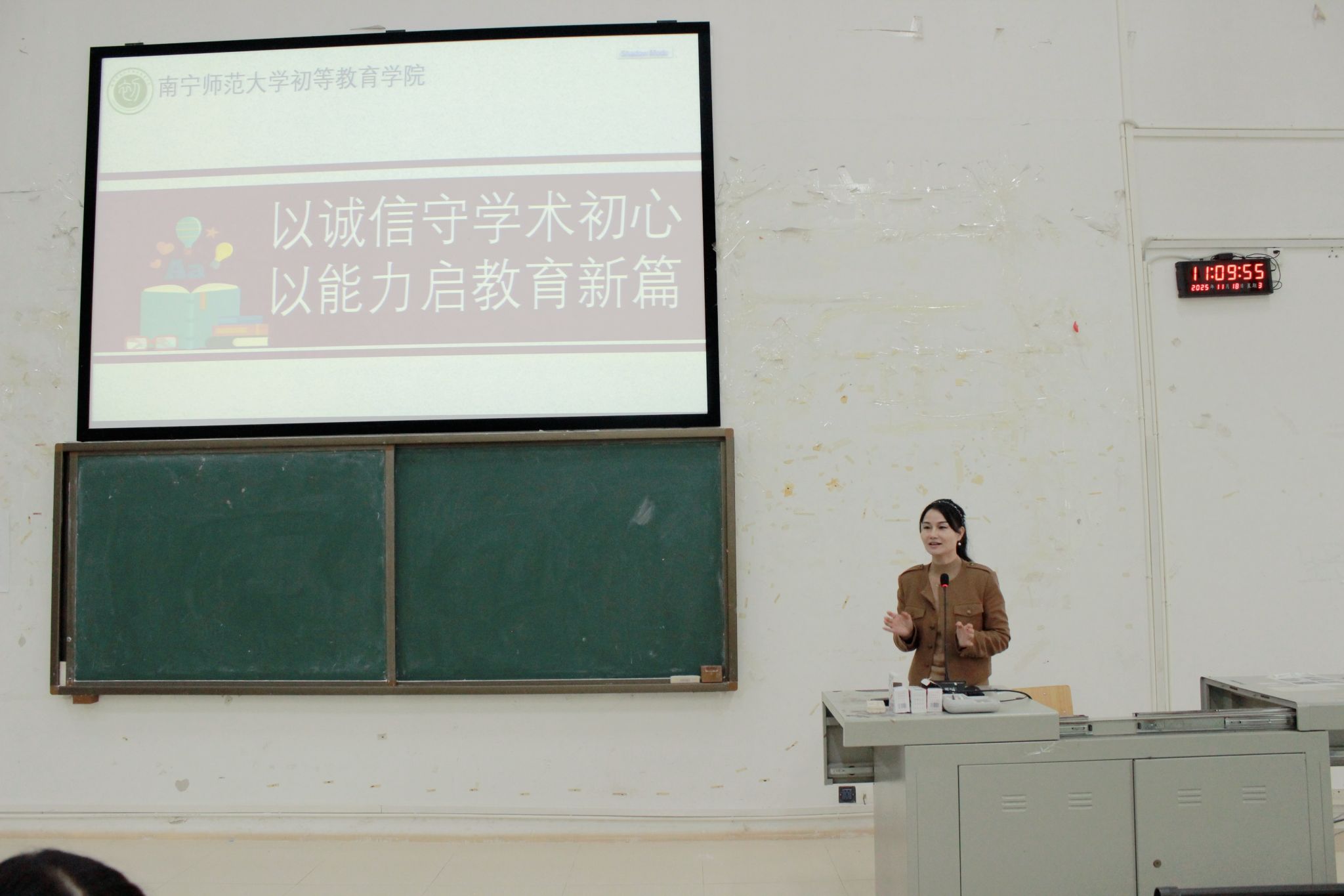 11月18日上午,初等教育學院在五合校區綜合教學樓308教室舉辦“恪守學術規范,堅守誠信底線”主題活動暨小學教育專業能力提升經驗分享會。學院碩士研究生導師代表王艷芳、三位2024級優秀研究生代表、全體研究生參加活動。