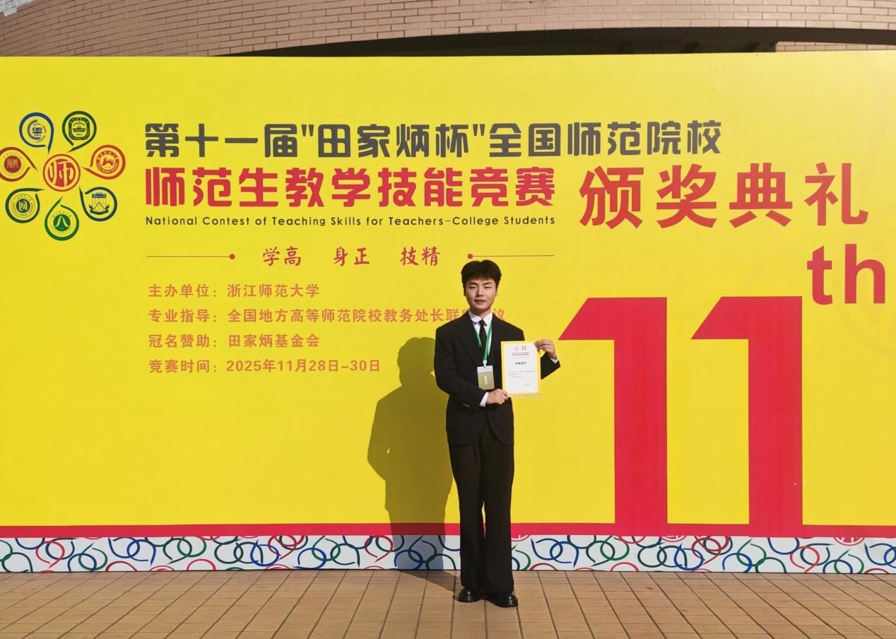 11月29日至30日,第十一屆“田家炳杯”全國師范院校師范生教學技能競賽決賽在浙江師范大學舉行。文學院2023級漢語言文學專業陶行知實驗班聶佳星同學在指導老師黃錚、黃斌、王毅的悉心指導下,憑借扎實的專業素養與出色的教學表現,榮獲全國一等獎。