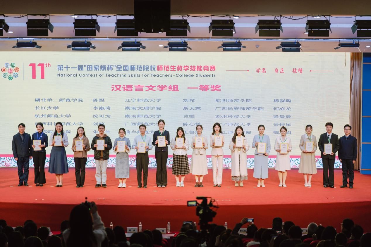 “田家炳杯”全國師范院校師范生教學技能競賽是國內本科師范教育領域規格最高、權威性最強、影響力最廣的全國性賽事,被多所師范院校列為一類學科競賽。文學院黃錚老師從第五屆開始負責此項賽事的指導工作,黃斌與王毅老師先后于2021年和2022年加入指導團隊。在已經過去的七屆大賽中,該團隊保持了穩定的發揮,已累計斬獲六個一等獎、一個二等獎。這些豐碩的成果,是文學院“以賽促學、以賽促教、以賽促練”育人理念的有效實踐。未來,文學院將繼續深化師范生教學技能培養與綜合素養提升,致力于為基礎教育輸送更多兼具專業深度與育人溫度的優秀語文教育工作者。