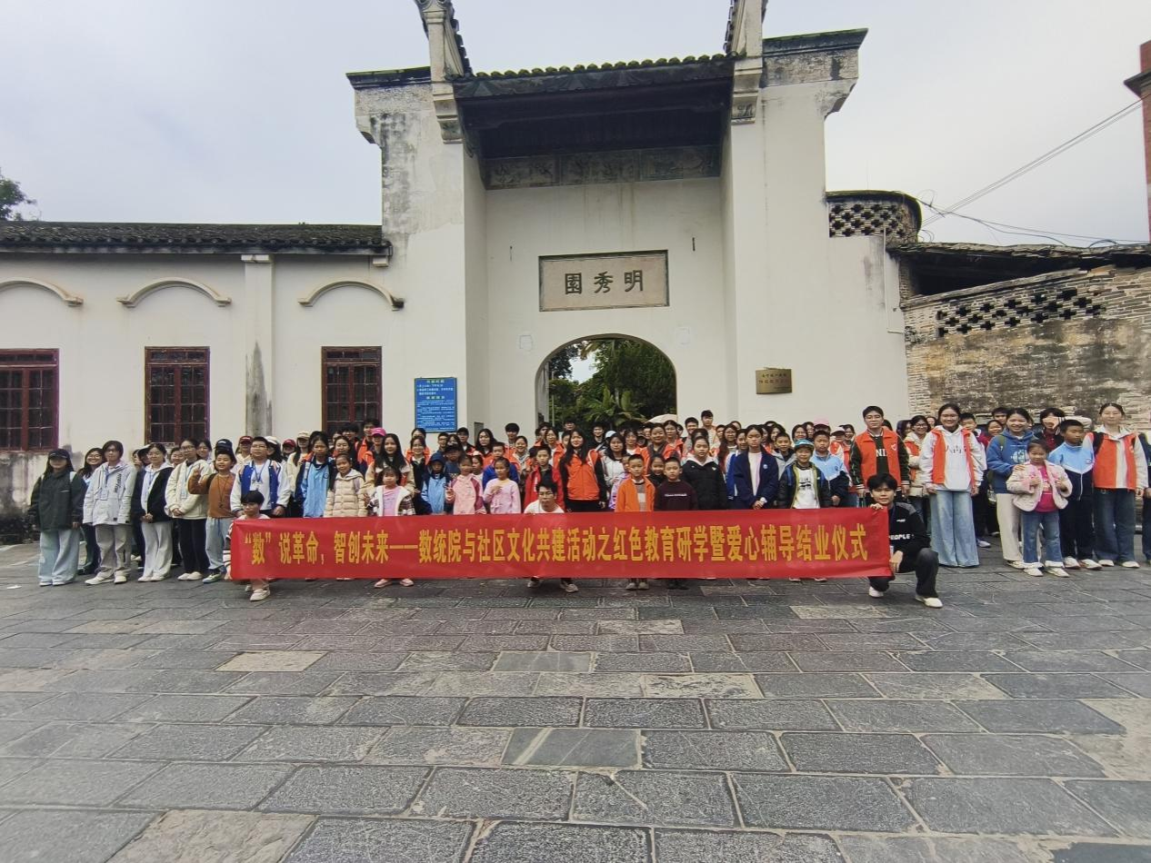 為更好服務(wù)社會(huì),傳承紅色基因,厚植青年家國(guó)情懷,傳遞教育溫暖,11月30日,數(shù)學(xué)與統(tǒng)計(jì)學(xué)院攜手和平解放社區(qū)居委會(huì)在南寧市武鳴區(qū)明秀園開(kāi)展“‘?dāng)?shù)'說(shuō)革命,智創(chuàng)未來(lái)”紅色教育研學(xué)暨秋季愛(ài)心輔導(dǎo)結(jié)業(yè)儀式活動(dòng),南寧市武鳴區(qū)和平解放社區(qū)孩子們、我校數(shù)學(xué)與統(tǒng)計(jì)學(xué)院實(shí)踐部及青年志愿者協(xié)會(huì)全體成員等百余人參與其中。