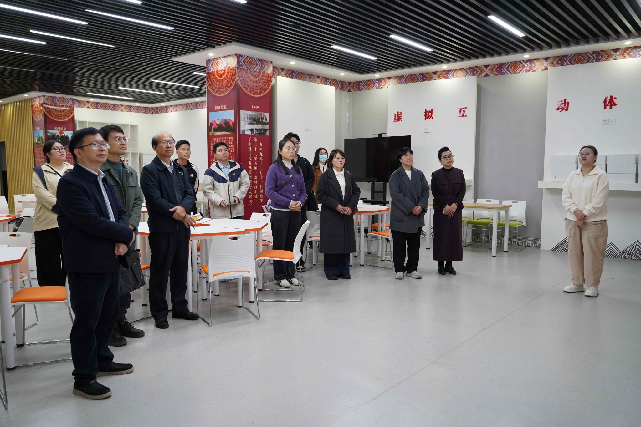 羅必本一行首先實地走訪馬克思主義學院黨史育人畫廊、科學社會主義發(fā)展史教育館、馬克思主義理論教育廣場、虛擬仿真實驗室等陣地。在交流會上,雙方聚焦黨建工作、思政專業(yè)建設、大中小學思政課一體化建設、鑄牢中華民族共同體意識教育及新入職教師培養(yǎng)等問題深入探討、各抒己見。