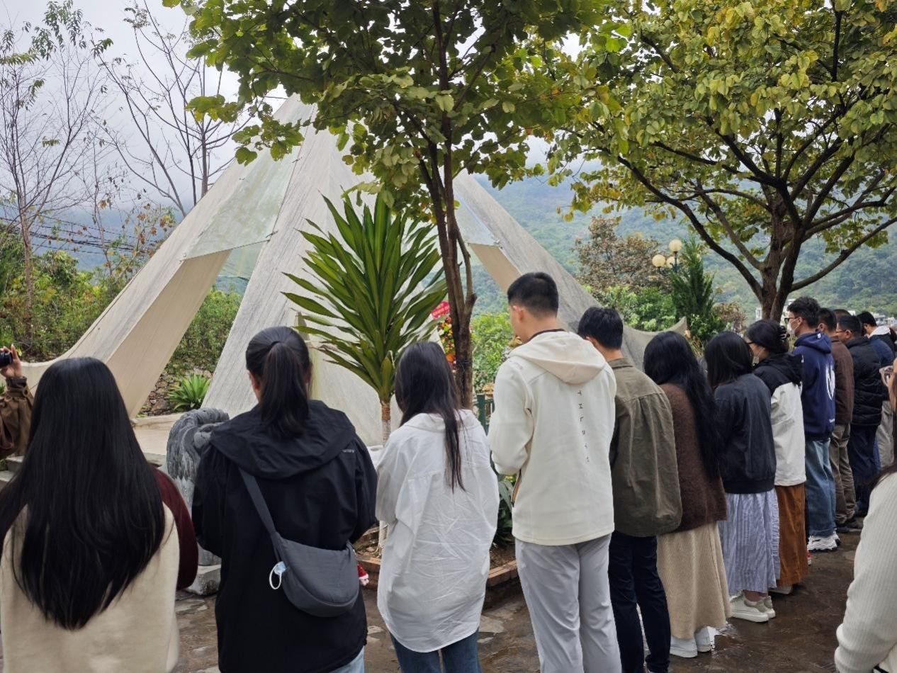 在遺址現場,講解員系統介紹了越南在抗法戰爭期間西進軍團執行戰斗和援助老撾革命的雙重任務,生動詮釋了20世紀中期中南半島地區“抗擊殖民主義、追求解放與社會主義理想”的跨國聯動革命實踐。活動最后,全體師生在哲學系范黃江院長主持下肅立默哀,向戰士致敬。