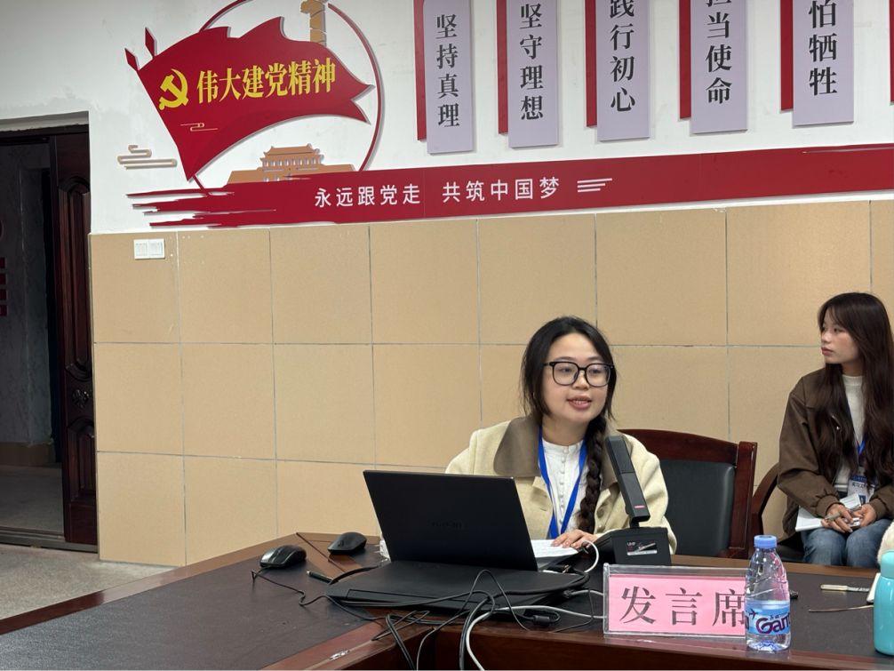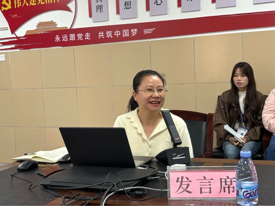 莫慶信副主任歡迎文學院師生到訪并介紹會議流程。實習生代表鄧詩詩分享實習經歷,總結中期收獲,感謝五中為大家提供學習的平臺。五中指導教師代表黃玫發言,肯定實習生態度,分享指導經驗,鼓勵其參與班級管理、加強與學生交流。