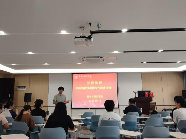 2025年10月13日,應(yīng)廣西應(yīng)用數(shù)學(xué)中心(南寧師范大學(xué))的邀請,河南師范大學(xué)楊新光教授為中心骨干成員以及碩士研究生作了題目為《Well-posedness and stability for some fluid-structure interface problems》的學(xué)術(shù)報告。報告由數(shù)學(xué)與統(tǒng)計學(xué)院副院長劉利斌教授主持。