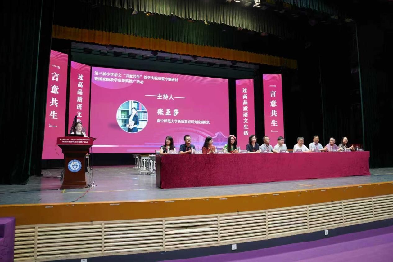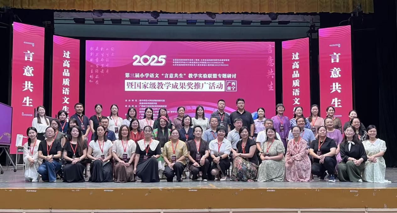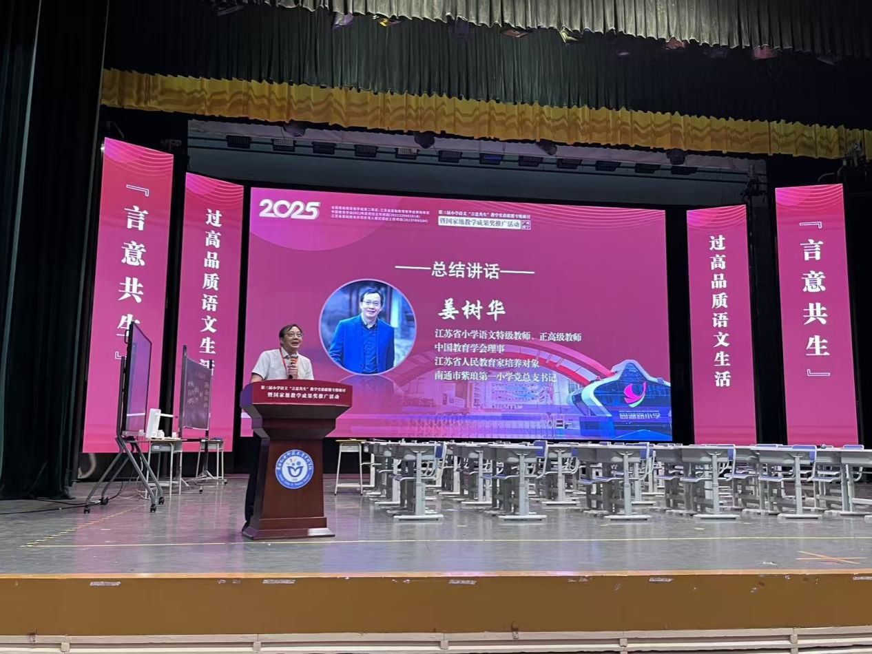 2025年10月13日至14日,我校新質(zhì)教育研究院與南通市教師發(fā)展學(xué)院聯(lián)合主辦,廣西南寧市青秀區(qū)教育局教研室、江蘇南通姜樹華名師工作室、國家級教學(xué)成果小學(xué)語文“言意共生”教學(xué)實(shí)驗聯(lián)盟承辦,廣西南寧市園湖路小學(xué)協(xié)辦的“第三屆小學(xué)語文‘言意共生’教學(xué)實(shí)驗聯(lián)盟專題研討暨國家級成果獎推廣活動”成功舉辦。新質(zhì)教育研究院院長楊滿福、新質(zhì)教育研究院首席專家莫運(yùn)佳、南通市教師發(fā)展學(xué)院院長孫亞麗、南寧市青秀區(qū)教育局教研室主任李雪貞等出席了開幕式。江蘇省基礎(chǔ)教育示范性育人模式研創(chuàng)工程項目組導(dǎo)師及全體成員、姜樹華名師工作室成員、語文教師代表和小學(xué)生代表近1000人參加了活動。