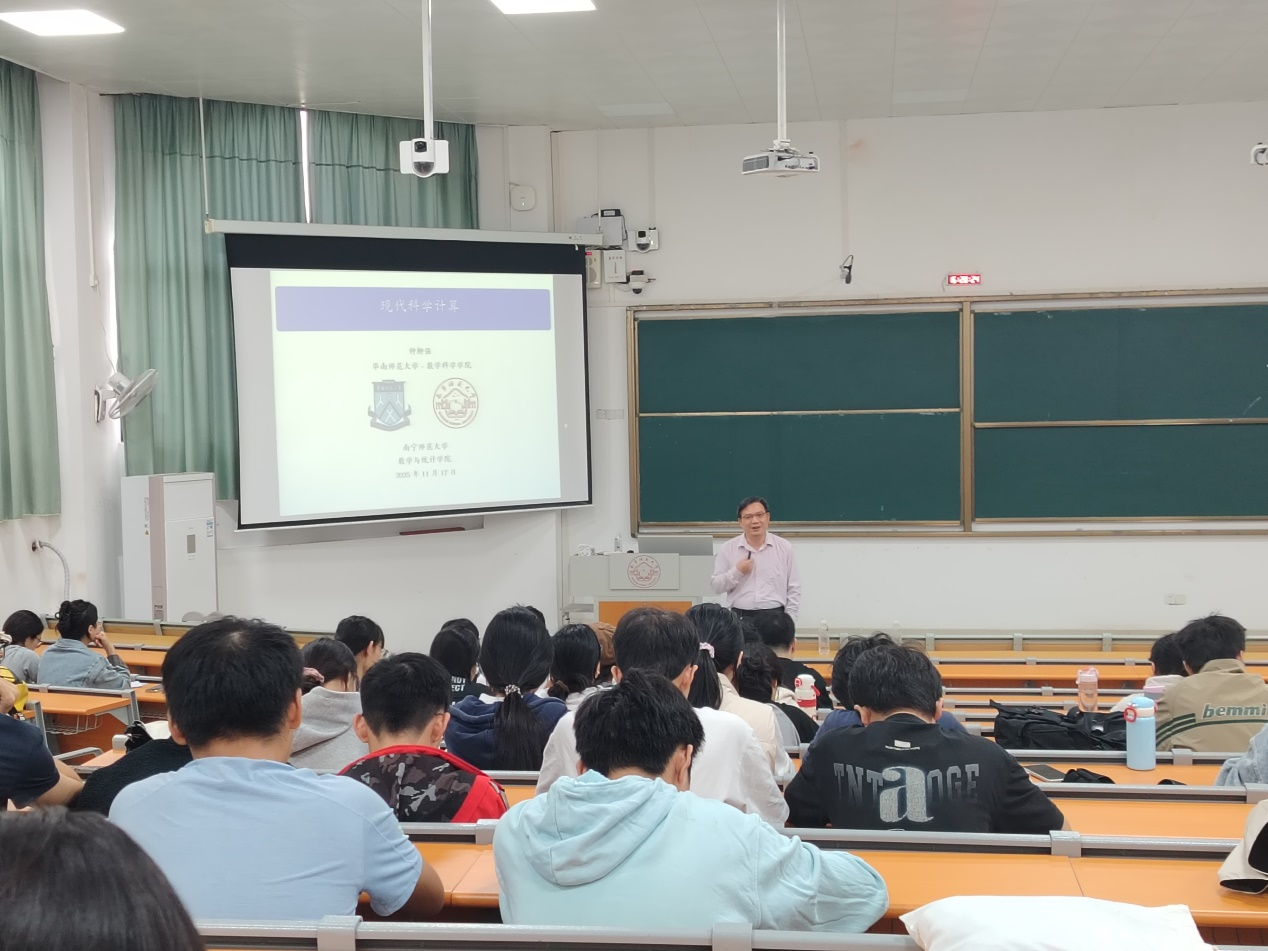 11月17日,應數學與統計學院的誠摯邀請,華南師范大學知名學者鐘柳強教授蒞臨學院,為師生們帶來了一場題為《現代科學計算:方法、應用與挑戰》的精彩學術報告。報告由學院副院長劉利斌教授主持,數學與應用數學專業部分本科生及學術型研究生參加了此次報告會。