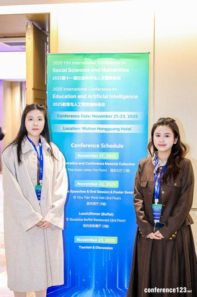 11月21日至23日,2025年教育與人工智能國際會議在中國武漢舉辦。本次會議聚焦人工智能與教育的融合發展,采用線下專題研討的形式,匯聚了來自全球多個國家和地區的教育技術專家、研究者。地理科學與規劃學院學科教學(地理)專業研究生李美豫、盧佳欣提交會議論文并受邀參會,與海內外多名教育領域同仁交流前沿動態,分享實踐成果。