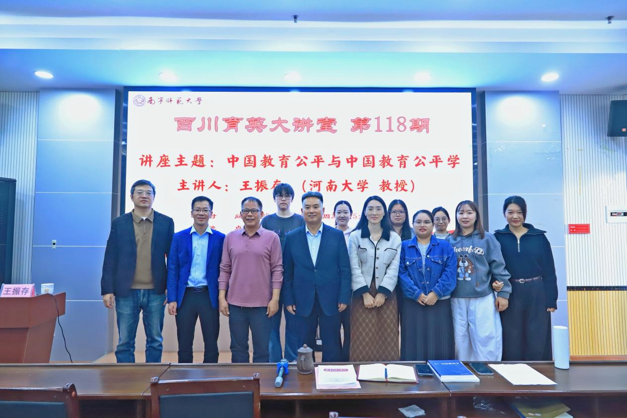 11月26日,由南寧師范大學教育科學學院主辦、廣西教育現代化與質量監測研究中心承辦的第118期《百川育英大講堂》講座在五合校區理綜樓北1003室順利舉行。本次講座特邀河南大學王振存教授,以“中國教育公平與中國教育公平學”為主題展開深入分享,由教育科學學院黨委書記余朝文教授主持。